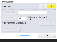 برای استفاده از Proxy، باید <On> را فشار دهید، <Server Address> و <Port Number> را برای وارد کردن هر مقدار فشار داده و <OK> را فشار دهید.