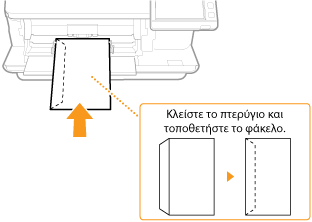 Σε αυτήν την ενότητα περιγράφεται ο τρόπος τοποθέτησης των φακέλων με τον σωστό προσανατολισμό, καθώς και οι διαδικασίες που πρέπει να ολοκληρώσετε προτού τοποθετήσετε φακέλους. Για περιγραφή της γενικής διαδικασίας τοποθέτησης φακέλων στον δίσκο πολλαπλών χρήσεων, δείτε Βασική μέθοδος τοποθέτησης χαρτιού.