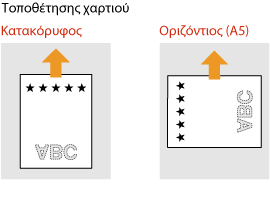 Σε αυτή την ενότητα περιγράφεται ο τρόπος τοποθέτησης προεκτυπωμένου χαρτιού κατά την εκτέλεση αντιγραφής/εκτύπωσης μονής όψης. Κατά την εκτέλεση αντιγραφή/εκτύπωσης διπλής όψης με χρήση προεκτυπωμένου χαρτιού, τοποθετήστε το χαρτί λαμβάνοντας υπόψη ότι οι ενδείξεις σε αυτή την ενότητα που αναφέρονται στην όψη του χαρτιού εννοούν το αντίθετο.