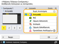 Μπορείτε να δημιουργήσετε ένα πλήκτρο συντόμευσης λειτουργιών στην οθόνη <Αρχική>. Χρησιμοποιήστε αυτό το πλήκτρο για να αποκτήσετε πρόσβαση σε μια διαφορετική λειτουργία χωρίς να επιστρέψετε στην οθόνη <Αρχική>. Για να δημιουργήσετε μια συντόμευση, συνδεθείτε με δικαιώματα διαχειριστή.