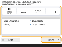Πατήστε <Αντιγραφή>  και καθορίστε τις ρυθμίσεις αντιγραφής. Οθόνη <Αρχική>