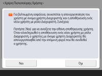 Για να ενισχύσετε την ασφάλεια της συσκευής απενεργοποιώντας τον χρήστη «Administrator» και αποθηκεύοντας έναν νέο διαχειριστή, πατήστε <Ναι>. Στο Αποθήκευση Διαχειριστή, πατήστε <Όνομα Χρήστη> και <Συνθηματικό> και, στη συνέχεια, πατήστε <OK>. Καθορίστε το <Διεύθυνση E-mail>, <Κωδ. Τμήματος> και το <Εμφανιζόμενο Όνομα> όπως απαιτείται. Για περισσότερες πληροφορίες, ανατρέξτε στην ενότητα Καταχώριση πληροφοριών χρηστών στην τοπική συσκευή. Ο χρήστης «Administrator» θα έχει απενεργοποιηθεί την επόμενη φορά που θα συνδεθείτε.