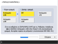 Αν επιλέξατε <Ασύρματο LAN>, καθορίστε τις ρυθμίσεις ασύρματου LAN.
