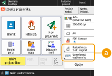 Zaslon z osnovnimi funkcijami kopiranja