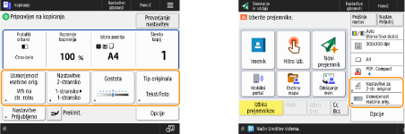 Spremenite lahko gumbe za nastavitve na zaslonih z osnovnimi funkcijami (za kopiranje, pošiljanje faksov in optično branje). Prav tako lahko prikažete različen zaslon z osnovnimi funkcijami, ki je prilagojen posameznemu prijavljenemu uporabniku.