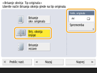 Če se velikost, prikazana v <Velik. originala>, razlikuje od velikosti knjige, pritisnite <Sprem.>, da izberete velikost. Optično lahko preberete samo velikosti izvirnikov, ki so prikazane na zaslonu na dotik.