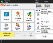 Zaslon osnovnih značajki funkcija skeniranja i slanja