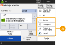 Broj stavki postavki koje se nalaze na zaslonu s osnovnim značajkama i lokacija na kojoj će se prikazati ovise o funkcijama.