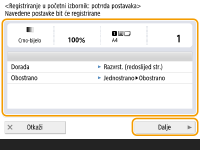 <Registriranje u početni izbornik> kada je postavka dovršena.
