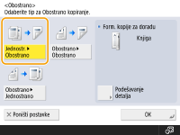 Kad obostrano kopirate, ograničene su funkcije nekih postavki, poput formata i vrste papira. Dodatne informacije potražite u odjeljku Tehnički podaci o hardveru.