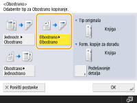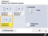 Jednostrane izvornike možete kopirati na obje strane papira. Osim toga, obostrano ispisani izvornik možete kopirati na obje strane jednog lista papira ili na dva zasebna lista.