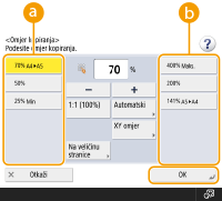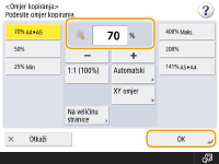 Možete povećati ili smanjiti navođenjem omjera kopiranja (%). Možete individualno odrediti okomite i vodoravne omjere.