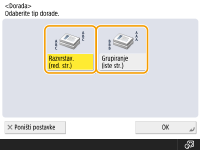 Prilikom kopiranja dva primjerka ili više njih iz ulagača, možete odabrati razvrstavanje ili grupiranje radi određivanja redoslijeda ispisa. Za ispis u redoslijedu stranica, odaberite „Razvrstavanje“. „Grupiranje“ odaberite za ispis snopova iste stranice, primjerice, 10 listova prve stranice, zatim 10 listova druge stranice i tako redom.