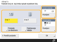 Pritisak na <Promijeni> u <Format originala> omogućava vam odabir formata izbornika, a pritisak na <Promijeni> u <Format papira> omogućava odabir formata papira.