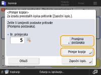Pritisnite <Promjena postavaka> da biste promijenili postavke. Prikazuje se <Primjer kopije> nakon promjene postavki. Ponovno kopirajte uzorak.
