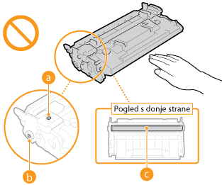 Uvijek držite spremnik tonera za ručicu.