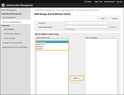 Odaberite korisnike koje želite uključiti u skupinu korisnika i kliknite [Add >>].