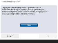 Pritisnite <Prijava> i unesite korisničko ime i lozinku korisnika s administratorskim privilegijama. Zadano korisničko ime za administratora je „Administrator“, a zadana lozinka je „7654321“. Ponovno pritisnite <Prijava>, a zatim pritisnite <OK>.