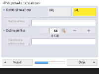 Za korištenje ručne adrese pritisnite <Ručna adresa>, <Dužina prefiksa> i <Standardna adresa rutera> za unos svake vrijednosti.