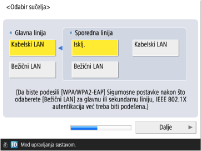 Ako odaberete <Bežični LAN>, navedite postavke bežičnog LAN-a.