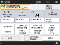 Prikazuje status postavke kao što je razlučivost i veličina skeniranja. Provjerite jesu li postavke u redu kako biste pravilno skenirali. Da biste promijenili postavke, pritisnite gumb pod odlomkom zaslona. Informacije o formatima datoteka pogledajte u odjeljku
