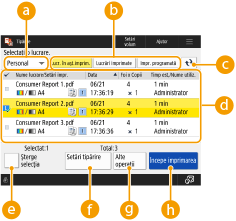 <Setări tipărire>/<Setări Impr. pt. Lucr. selectate>