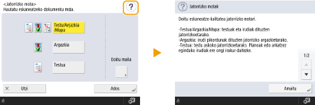 Bistaratutako funtzioaren arabera, baliteke pantailaren goiko eskuineko aldean bistaratzea. sakatzean, funtzioaren deskribapena edo funtzioa nola erabili berrets dezakezu.
