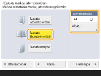 <Jatorrizko tamaina>-(e)an bistaratutako tamaina eta originalaren tamaina desberdinak badira, sakatu <Aldatu> tamaina hautatzeko. Ukipen-panelean bistaratutako tamaina originaletan baino ezin duzu Ezabatu marko originala modua ezarri.