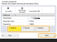 Iraganean zehaztutako helburuak berreskura ditzakezu. Eskanerraren ezarpenak, dentsitatea adibidez, aldi berean berreskuratuko dira.