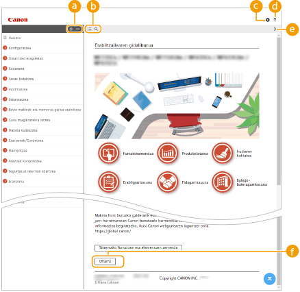 Sakatu Erabiltzailearen gidaliburua nola ikusteari, bilaketak nola burutzeari eta bestelako gaiei buruzko informazioa bistaratzeko.