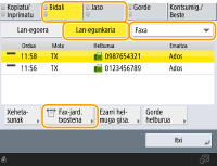 Fax-jardueraren txostena eskuz inprimatu dezakezu erabilera historiako zerrenda batetik. Fax bidalketa/jasotze egunkaria