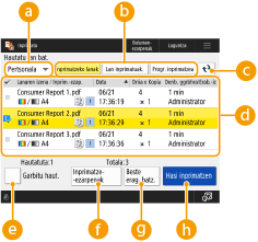 Pantaila horretan, gordetako dokumentuak, inprimatze-dokumentu babestuak edo inprimatze-dokumentu babestu enkriptatuak inprima ditzakezu. Inprimatze-dokumentu horien edo inprimatze-dokumentu programatuen edukia berrikus dezakezu, edo inprimatze-ezarpenak alda ditzakezu.