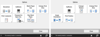 Print Settings Screen Options