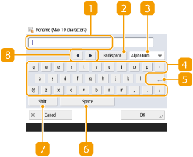When displaying the numeric keys iconWhen < You can use numeric keys.> is displayed, you can enter numerical values using the numeric keys on the right of the touch panel display.Example: <XY Ratio> setting screen ![]() When < Enter using the numeric keys.> is displayed, only the numeric keys on the right of the touch panel display can be used for entering numbers.Enter characters from the USB keyboardTo enter characters, you can also use a USB keyboard by connecting it to the USB port (Front Side). Note the following points when entering from a USB keyboard. Set <Use MEAP Driver for USB Input Device> in <USB Settings> to <Off>. <Use MEAP Driver for USB Input Device> You can only enter ASCII characters from a USB keyboard. Keys that are not displayed on the keyboard screen of the touch panel display, such as Delete, End, Tab, Esc, and function keys, cannot be used on a USB keyboard. The entering sound of a USB keyboard is produced based on the <Entry Tone> and <Invalid Entry Tone> settings on the sound setting screen. Setting Sounds |