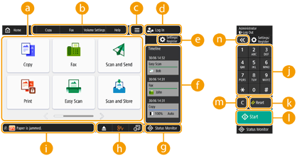 These buttons enable you to open the basic function screens, such as "Copy" and "Scan and Send".