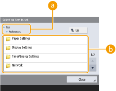 (Settings/Register) to display the <Settings/Registration> screen. Press this key first to make changes for each setting, such as paper settings, display settings, and network settings. On this screen, you can also register destinations, such as e-mail addresses and fax numbers.