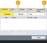 (Status Monitor), the <Status Monitor> screen is displayed. On this screen, you can check the printing status and transmission status, as well as the remaining amount of toner and memory level.