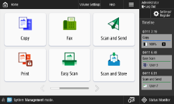 Press displayed on the <Home> screen and the Basic Features screen to customize the screen such as rearranging buttons or creating a shortcut key. Customizing the Touch Panel Display![]() You can change settings regarding the screen display, such as which screen appears immediately after turning ON the machine, and whether the message appears for remaining paper and toner. <Display Settings> You can set the screen to be displayed when a certain amount of time has passed without operation. <Function After Auto Reset> |