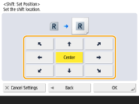 If no blank space exists because the original image and the output paper are the same size, or if you want to shift images by a few millimeters, specify the moving distance.