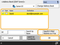 You can search and specify destinations registered in the LDAP server.