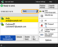 Scan Basic Features ScreenSpecifying Destinations from the Address Book