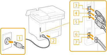 Disconnect the cables and cord from the machine in numerical order as in the illustration below.