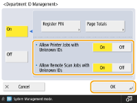 If <Off> is selected, a Department ID must be entered when executing a corresponding job.