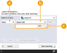 You can search destinations with multiple conditions. Specify the first search condition, press <Add Search Condition>, and then select <or> or <and> for the next condition.