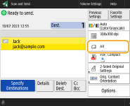 To select a destination from the <One-Touch> screen after scanning, set <One-Touch> for <Default Screen>. The work required for sending scanned documents to the same destination can be reduced. <Default Screen>The destinations registered in the one-touch buttons of the server machine are updated in the following times: When a fax job has been sent on the client machine When you press  (Reset) on the client machine When Auto Reset is activated on the client machine |