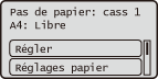 Si le format/type de papier affiché diffère du format/type de papier chargé, sélectionnez <Réglages papier>, et sélectionnez la source papier dans laquelle le papier est chargé.