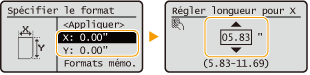 2 | Spécifiez la longueur du côté <X> et celle du côté <Y>. |