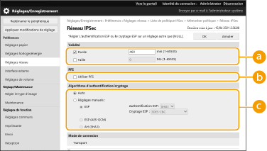 Configurer les réglages de communication IPSec.