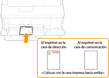 Esta sección describe cómo cargar tarjetas postales en la orientación correcta, así como los procedimientos que debe seguir antes de cargar tarjetas postales. Para obtener una descripción del procedimiento general para cargar tarjetas postales en la bandeja multiuso, consulte Método para la carga de papel básico. |