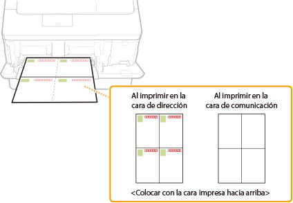 Antes de cargar tarjetas postales, lleve a cabo algunos preparativos como, por ejemplo, aplanar las arrugas. Preste también atención a la orientación de las tarjetas postales y a la cara que debe colocarse hacia arriba. Tenga en cuenta que no pueden cargarse sobres ni tarjetas en el casete de papel.
